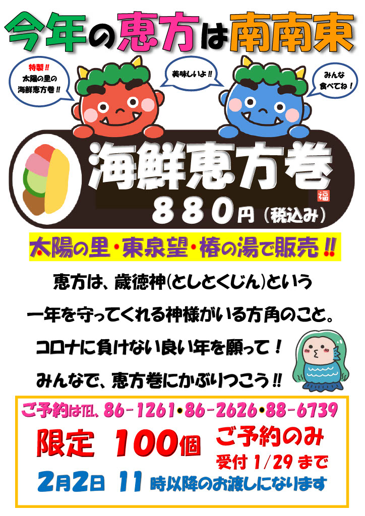 2021年1月17日 / 最終更新日時 : 2021年4月17日 sano トピックス 2021.2.2 海鮮恵方巻 FacebooktwitterHatena コメントを残す コメントをキャンセルメールアドレスが公開されることはありません。 ※ が付いている欄は必須項目ですコメント ※ 名前 ※ メール ※ サイト 次回のコメントで使用するためブラウザーに自分の名前、メールアドレス、サイトを保存する。